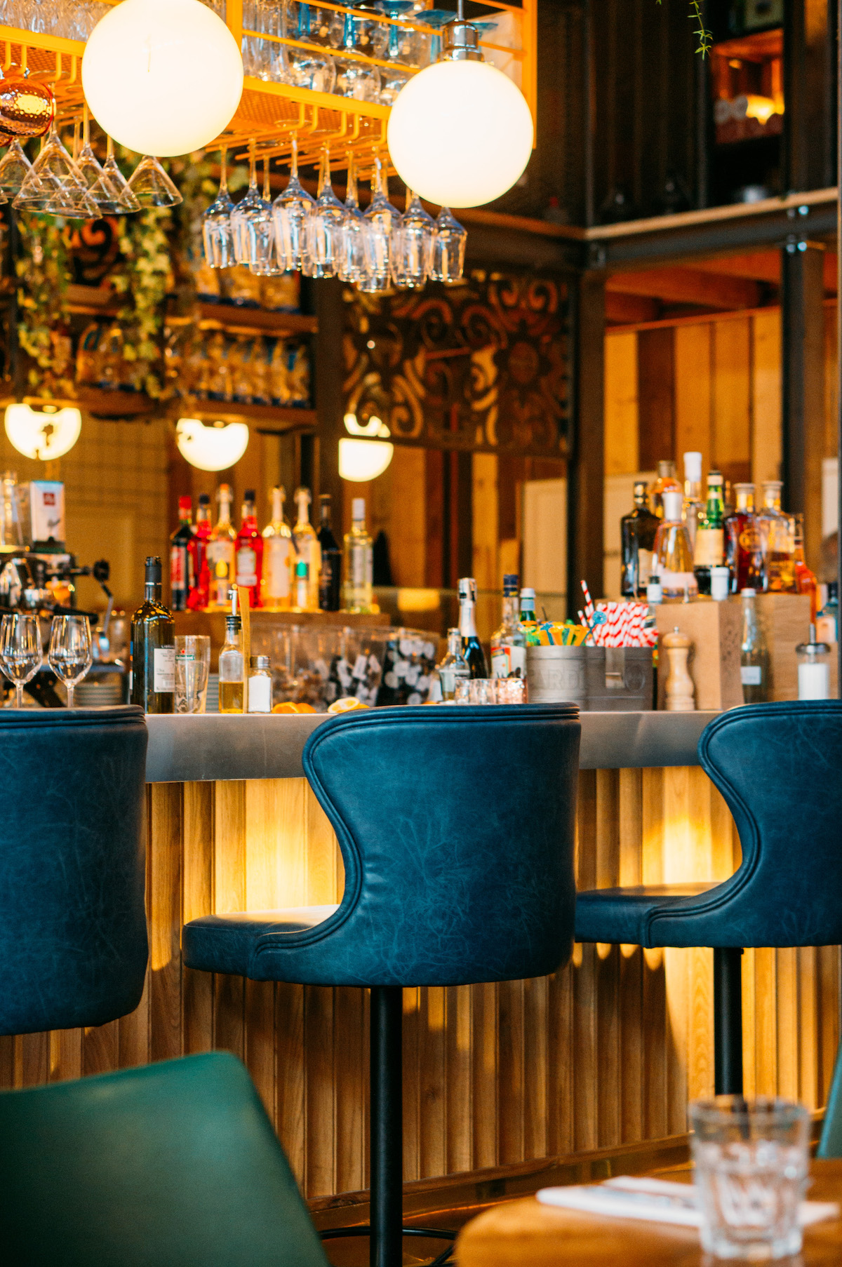 Blikvanger – naast de bar – is de enorme etalage met verlichte drankflessen. We zijn haast jaloers op de mensen die er tegenover wonen, vanwege het uitzicht. Ook is er een aparte bar waar de charcuterie en kazen uitgestald liggen. En mogen we het nog even over die prachtige retro lampen hebben die door de hele zaak hangen?