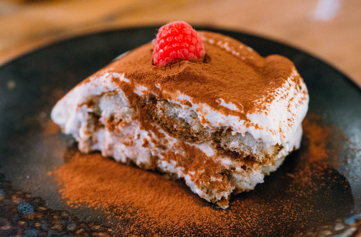 Zoals bij elke Italiaanse maaltijd verheugen we ons als een stel kleine kinderen op de tiramisu en die stelt niet teleur. Niet te zwaar, niet te zoet en je kunt alle afzonderlijke smaken (cacao, koffie, drank) goed proeven. Heerlijk.