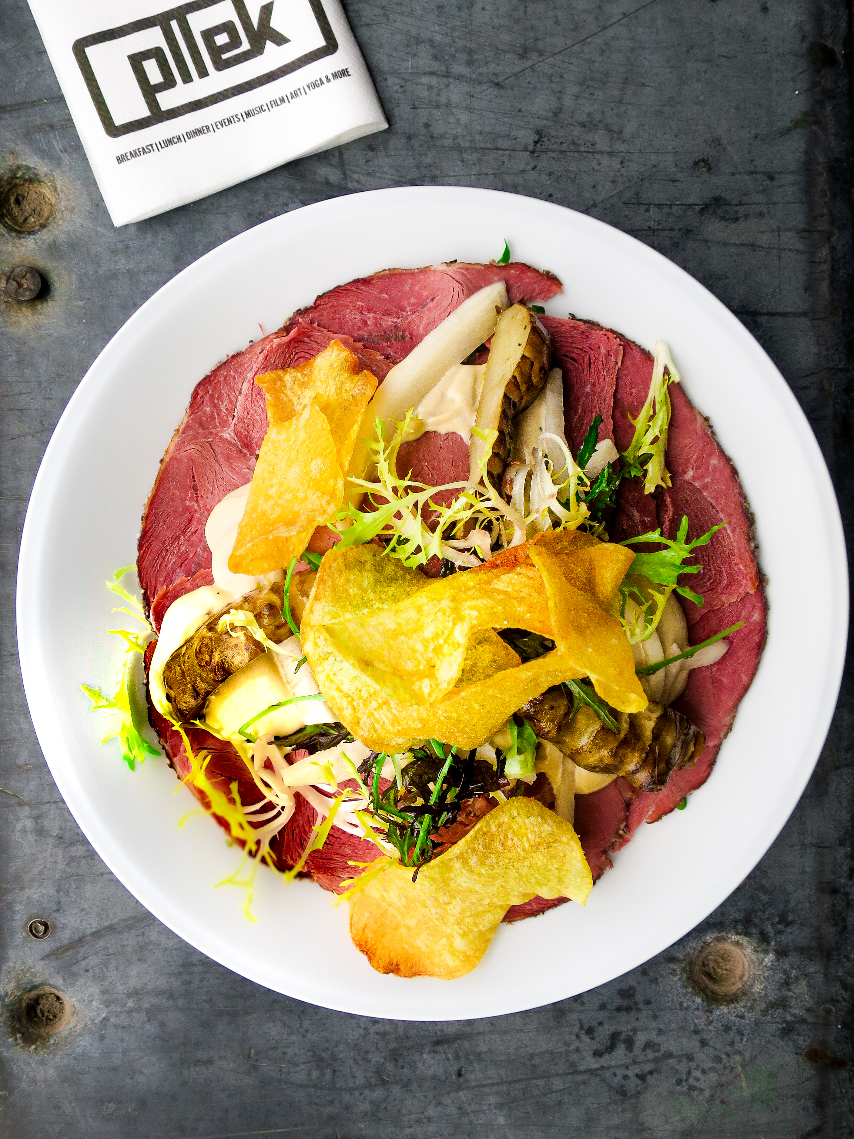 Vooral de pastrami weet ons te bekoren. Dat ze bij Pllek werken met biologisch vlees van kwaliteit, proef je goed. En als er aardpeer en ansjovismayonaise in een gerecht zit, heb je sowieso ons hart gewonnen.