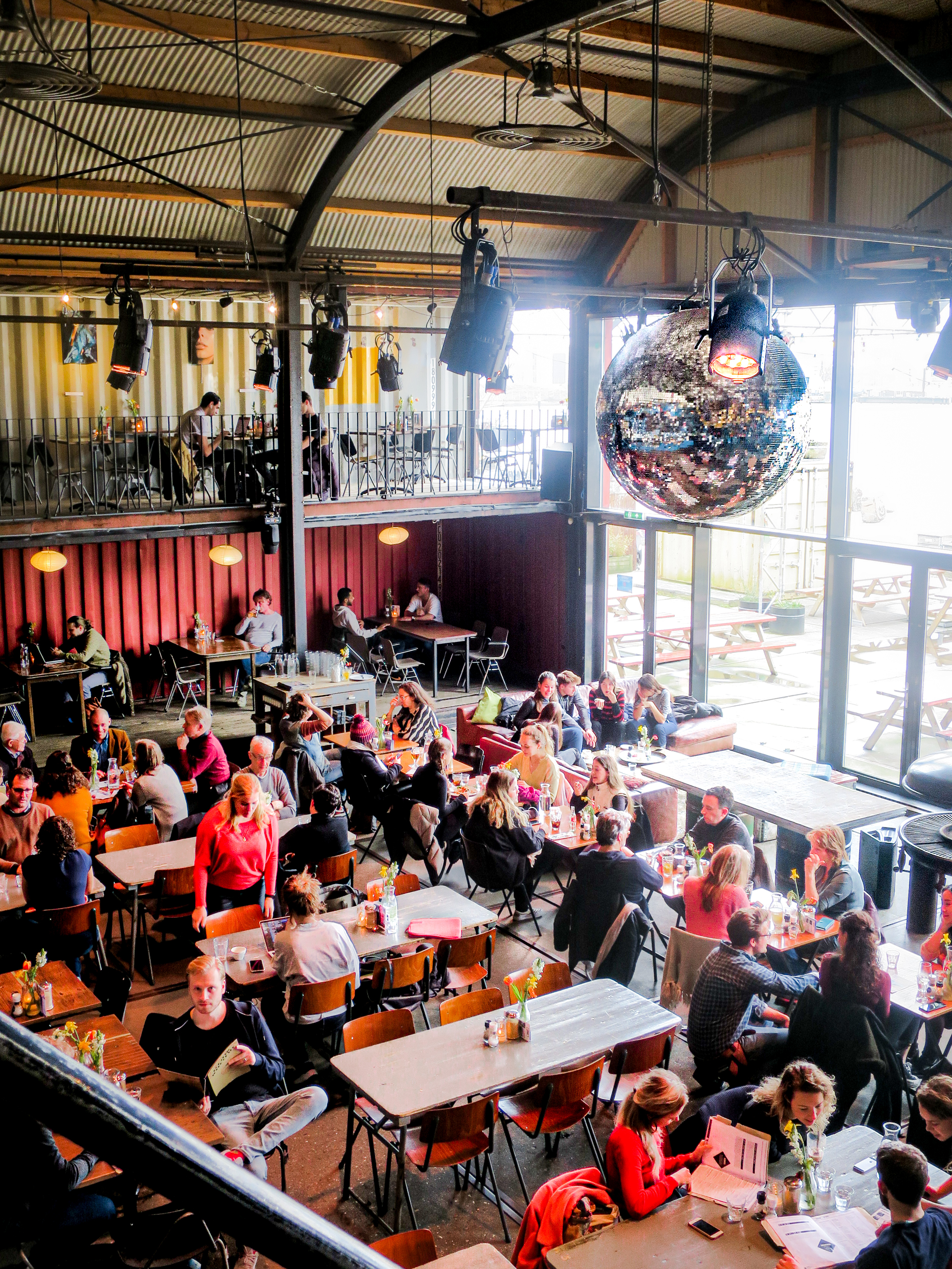 Dat kan haast niet anders, want het ís ook gewoon heel fijn vertoeven in het industriële pand met uitzicht op het IJ: voor gezinnen, voor zakelijke meetings van bedrijven uit de buurt en voor jongeren die willen doorzakken tot in de late uurtjes.