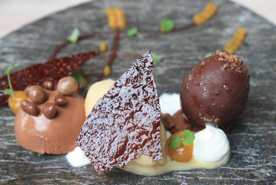 Tot slot het dessert, wat iets lastiger voor Sergio Herman was om te verzinnen. Het dessert moest namelijk uit Canada komen. Uiteindelijk is het de maple syrup geworden wat het dessert het Canadese tintje gaf. Het resultaat: chocolade met vanille maple syrup ijs. Het enige wat hierna nog moest gebeuren was nog meer cocktails drinken en uitbuiken!