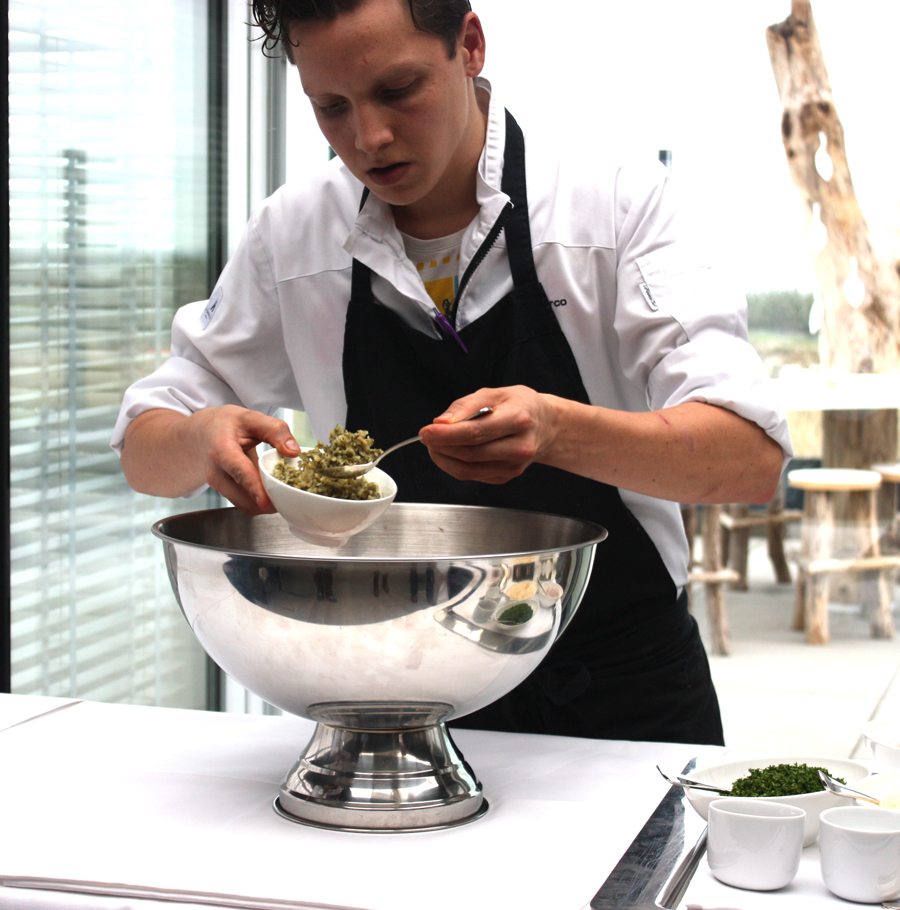 De volgende gang werd speciaal door chef Syrco Bakker voor ons bereid. Steak tartare à  la minute. De inspiratie van dit lekkere kleine hapje kwam vanuit Bistrot Le Muret in Frankrijk.