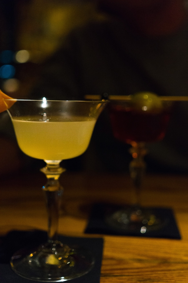 De tafelgenoot neemt de Martinez: oregano, venkelgin, Cocchi Barolo (wijn) en maraschino (kersenlikeur).