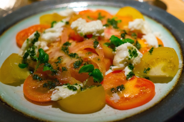 De burrata met tomaten is fris en romig; de tomaten hebben een mooie, intense tomatensmaak.