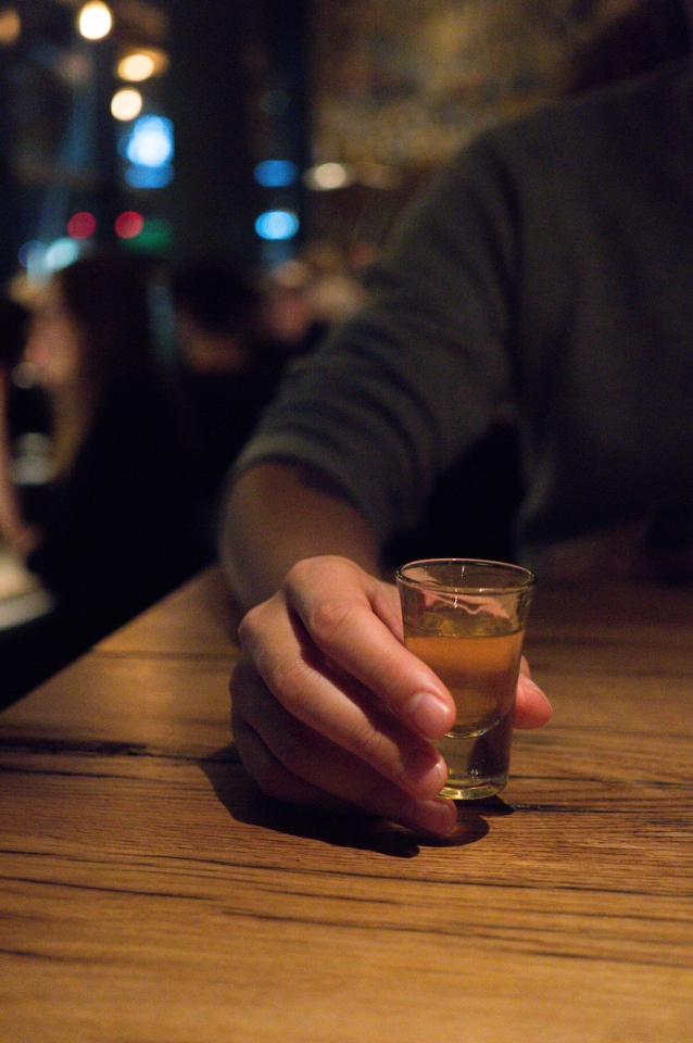 Als afzakkertje krijgen we nog een glaasje geitenboter-whisky. Klinkt bizar, maar geeft een bijzondere smaaksensatie. De cocktailshaker legt uit hoe dit wordt gemaakt: whisky met geitenboter mengen en bevriezen.