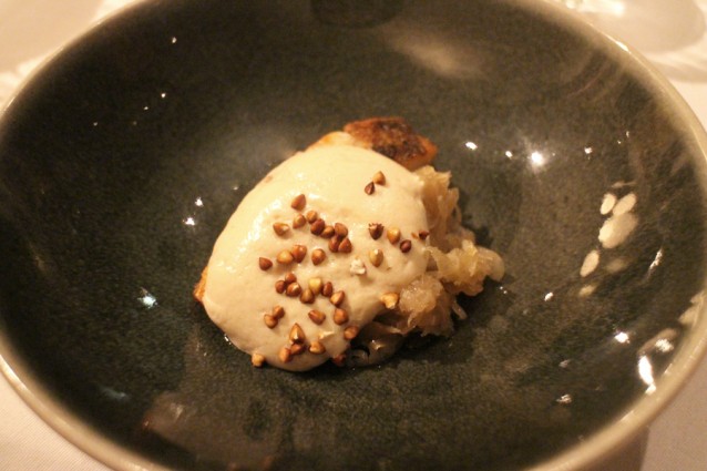 De daarop volgende bisque van strandkrabben met venkel is in één woord waanzinnig (het enige minpunt is het bakje, we krijgen de laatste hap er nét niet uit) en ook de snoekbaars met zuurkool, Hollandaise van ham en gepofte boekweit is goddelijk.