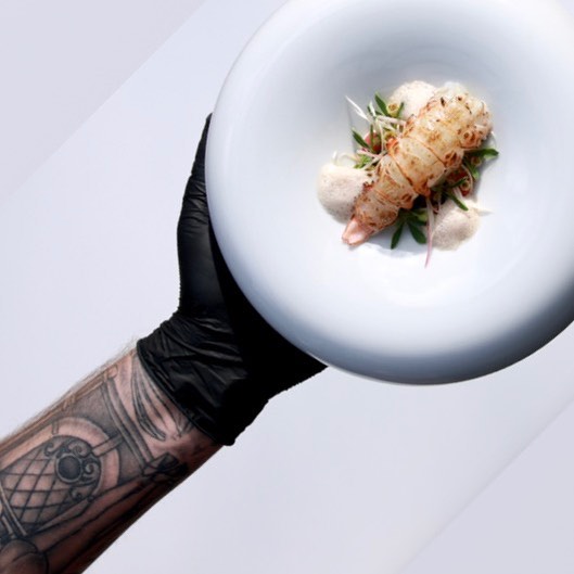 Wat je kan verwachten? Crispy salad van Noordzeekrab gecombineerd met knolselderij, kumquat en munt. Ceviche van makreel met doperwt, karnemelk, groene appel en dragon. Maar ook ganzenlever, met banaan, müesli en zure chocolade. En duif met rode biet, peterseliewortel, walnoot en cacao. Als ze zeggen verrassend bedoelen ze dat dus ook echt!