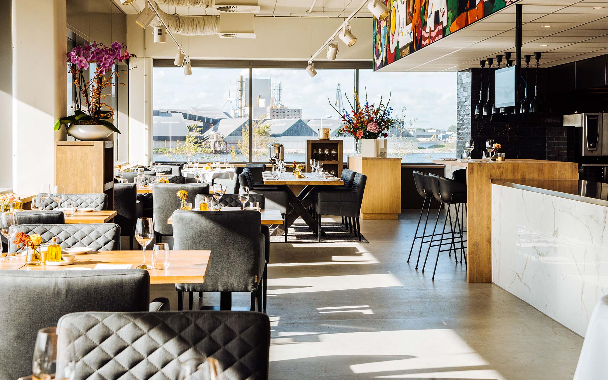 Je vindt Lars Amsterdam op de eerste verdieping van het Moxy / Residence Inn hotel, in de Amsterdamse Houthavens. Daardoor heeft het ook een prachtig uitzicht over het IJ, dat extra opvalt door de grote ramen. Mochten je tafelgenoten niet zo boeiend zijn, dan kun je dus altijd nog daarnaar kijken.