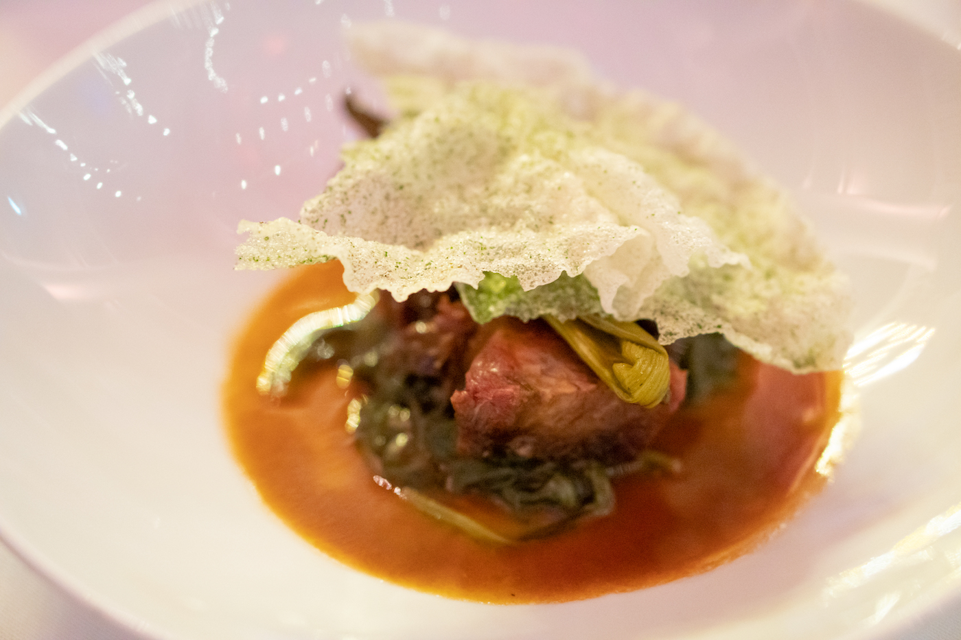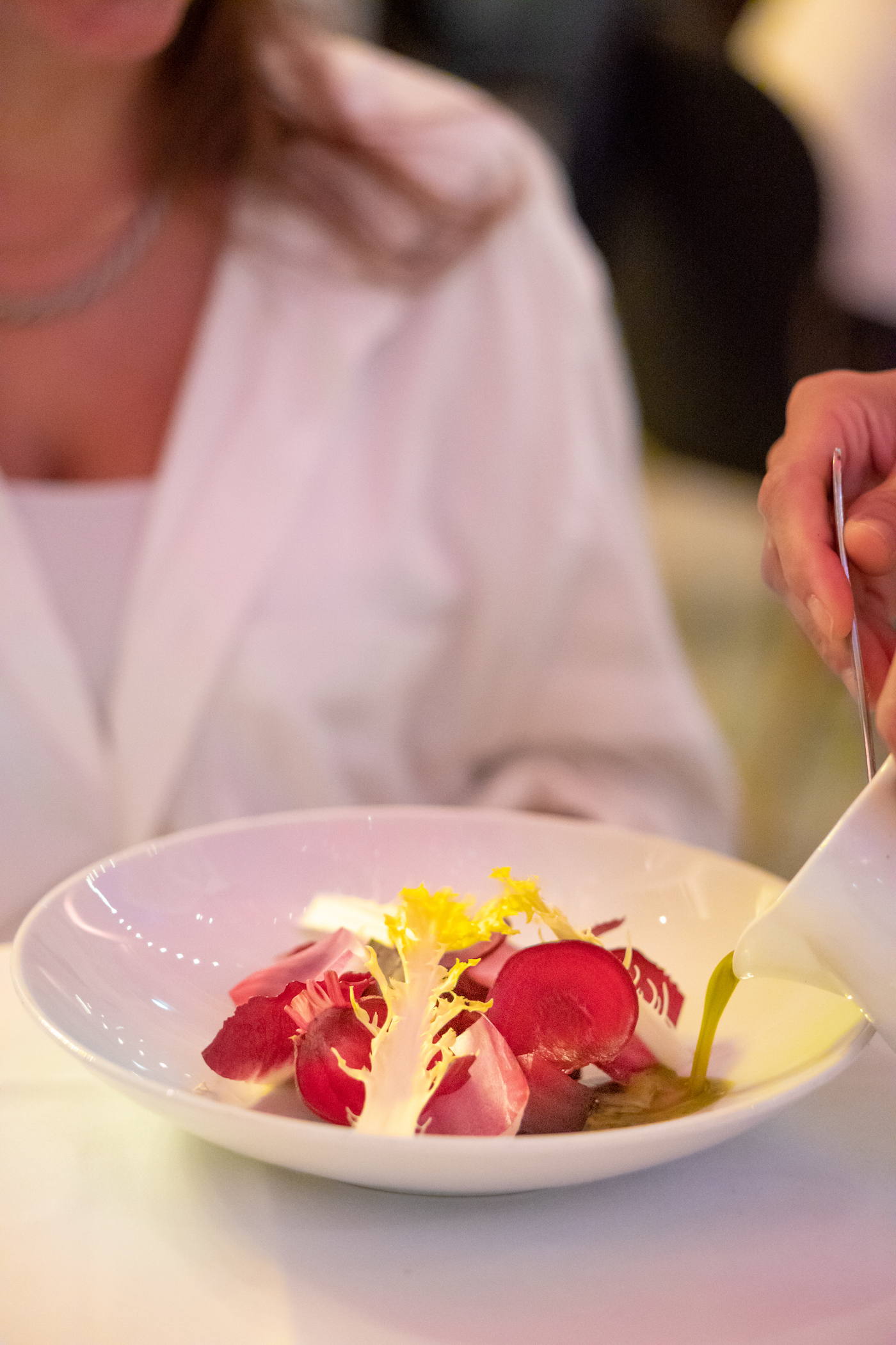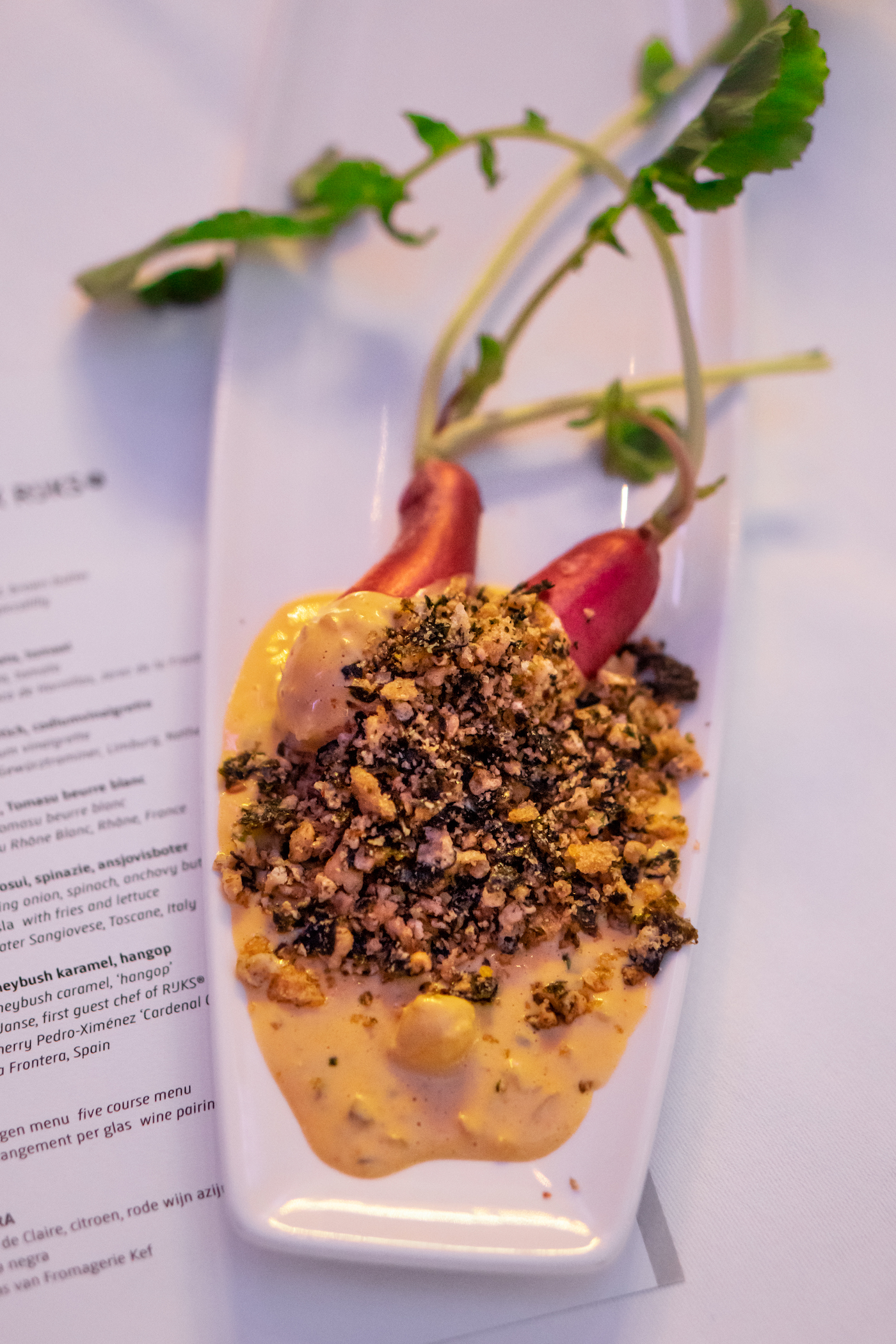 Gepofte rode biet met Tomasu beurre blanc. Oftewel: beurre blanc met sojasaus die in Rotterdam wordt gebrouwen. Inmiddels echt een beroemde RIJKS-klassieker en als je ‘m hebt geproefd, snap je waarom.