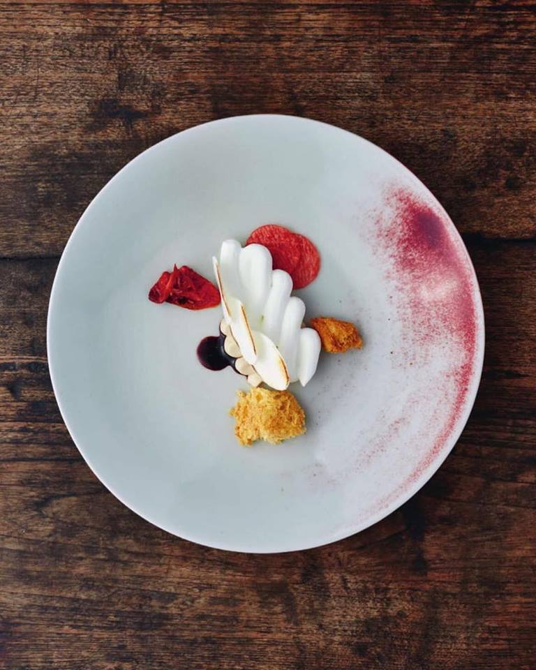 Het menu bestond onder andere uit de Planifoglia: een sabayon van gerst met lokale frambozen en “vanille”, de Scarborough Pear: tempura van appel met salie en toffee en de Plat du Jour: wentelteefjes van brioche met yoghurtijs, cake van aubergine, chocolade en koffie.
