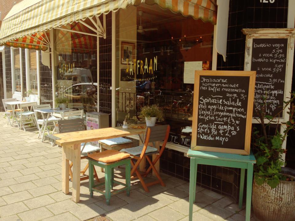 Of je gaat lekker aan één van de tafeltjes zitten en eet lekker daar. Meenemen of blijven, bij Saffraan kan het allebei.