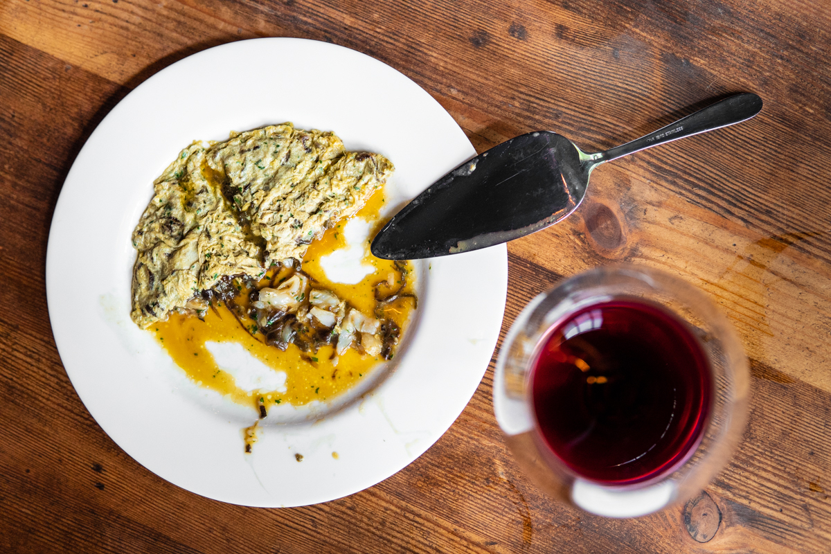 Daarna eten we de lekkerste omelet ooit: een kabeljauw omelet met boerencider in de stijl van Roxario: een beroemd ciderhuis in Astigarraga.