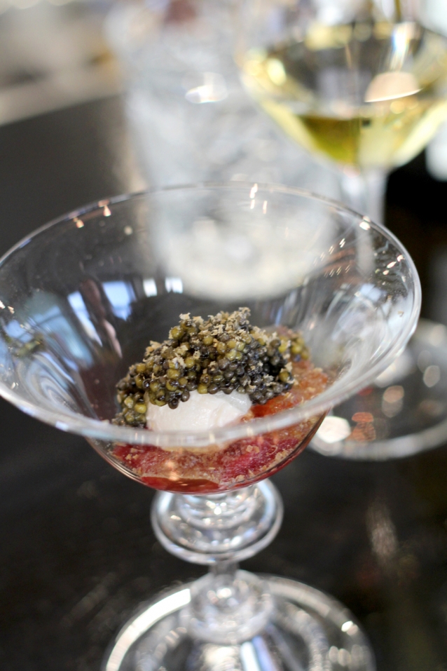 Tonijn met kaviaar, bottarga van tarbot en makreel-aspic