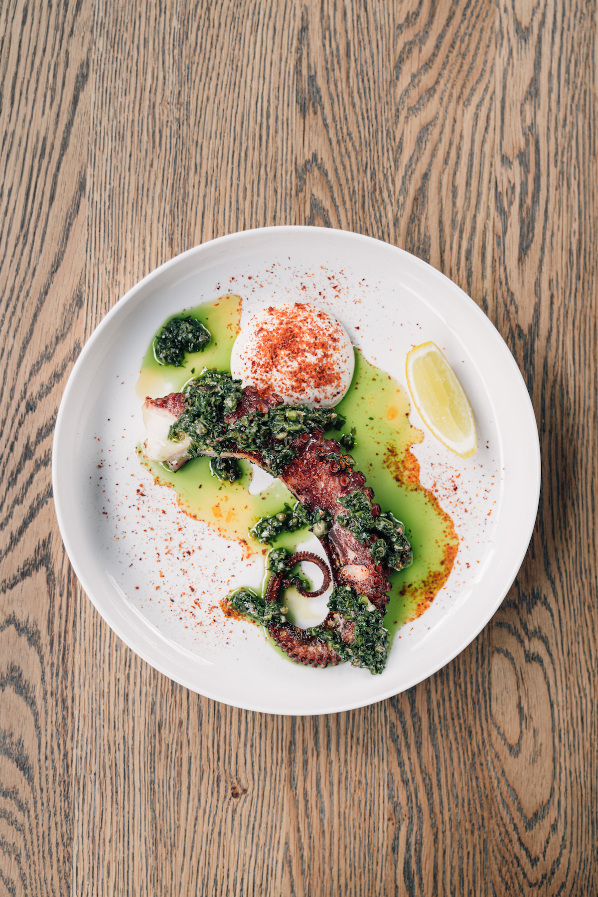 Een gerecht dat we ook niet hadden willen missen, is de pulpo. Ultiem vlezig en stevig, met een korst waarvan we echt niet snappen hoe ze ‘m zo knapperig en geblakerd hebben gekregen. De salsa verde, aïoli en citroen snijden door het stevige vlees heen.