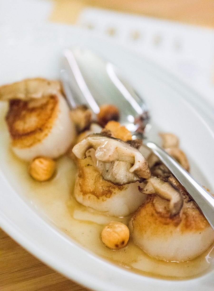 Werkelijk onweerstaanbaar zijn de coquilles met beurre noisette en hazelnoten. Heerlijk zoet en notig.