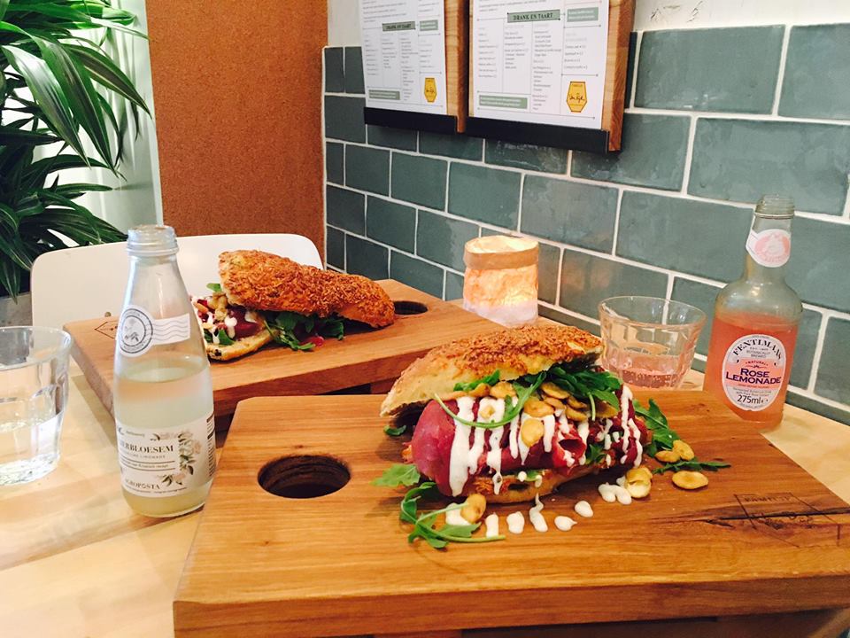 Logisch is het dan ook dat je achterin het pand ook meteen zo’n lekker broodje kunt eten! Van een broodje gerookte biefstuk met truffelmayonaise tot aan een tomatenbroodje met kerriehummus en gegrilde courgette.