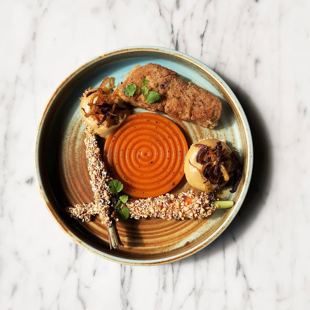 Qua voorgerechten staat er een interessante combinatie van buikspek, krab, kokos, mango en codium (zeewier) op het menu (maar ook opties als shiitake, japanse coquille of kalfzwezerik). Bij de hoofdgerechten staat er een gerecht met tamme eend, pistache, rabarber en sinaasappel tussen (maar ook de rogvleugel met kerrie en courgette springt in het oog) en als dessert kun je je onder meer verheugen op een combinatie met pecan, whisky, dragon en crème fraîche. Spannend!
