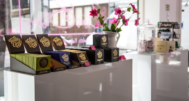 In de lieflijke winkel van zusjes Sanne & Claudia vind je alles wat met chocolade, thee en fudge te maken heeft. Van de lekkerste bonbons tot prachtige repen in nog mooiere wikkels.