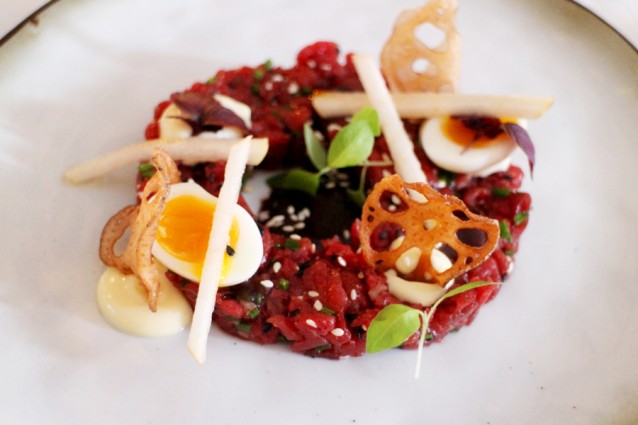 Ernaast bestellen we de Asian style steak tartare (hoe kan het ook anders?) met koffie, hoisin, kwartelei en nashipeer. Het laatste is érg goed gevonden, maar de kok is iets te scheutig geweest met de sesamolie waardoor de rest moeilijk te proeven valt.