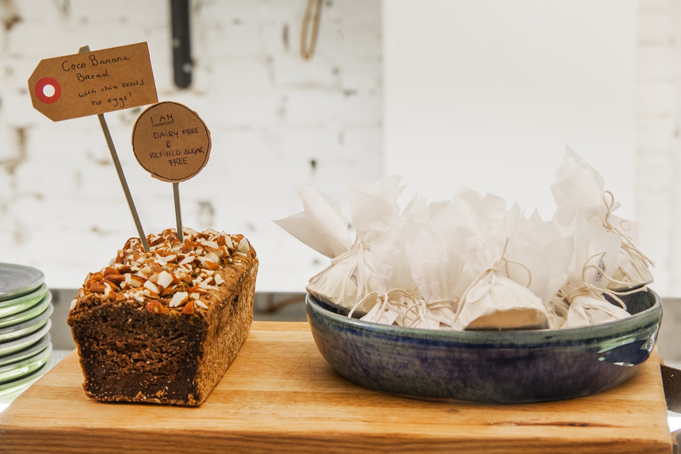 Tot slot wordt de zoete trek gestild met gezonde baksels: avocado-limoentaart of bietentaart met carob (beiden €4,-) of healthy balletjes met bijvoorbeeld hazelnoten, dadels en kokos (€2,-).
