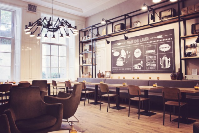 Leuk: bij Van de Leur werken ze samen met kleine bedrijven die hun producten op ambachtelijke wijze produceren. Zoals de Amsterdamse patissier Carle Douglas. De koffie komt van Headfirst Coffee Roasters en de thee van theehuis Betjeman & Barton.