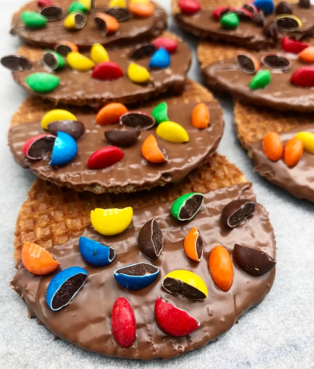 Er is namelijk een gloednieuwe stroopwafelwinkel in Amsterdam: Van Wonderen Stroopwafels. Het leuke hieraan is dat de wafels in chocolade worden gedipt en vervolgens met allerlei lekkere toppings worden versierd. Denk aan M&M’s, Oreo koekjes of gezouten karamel.