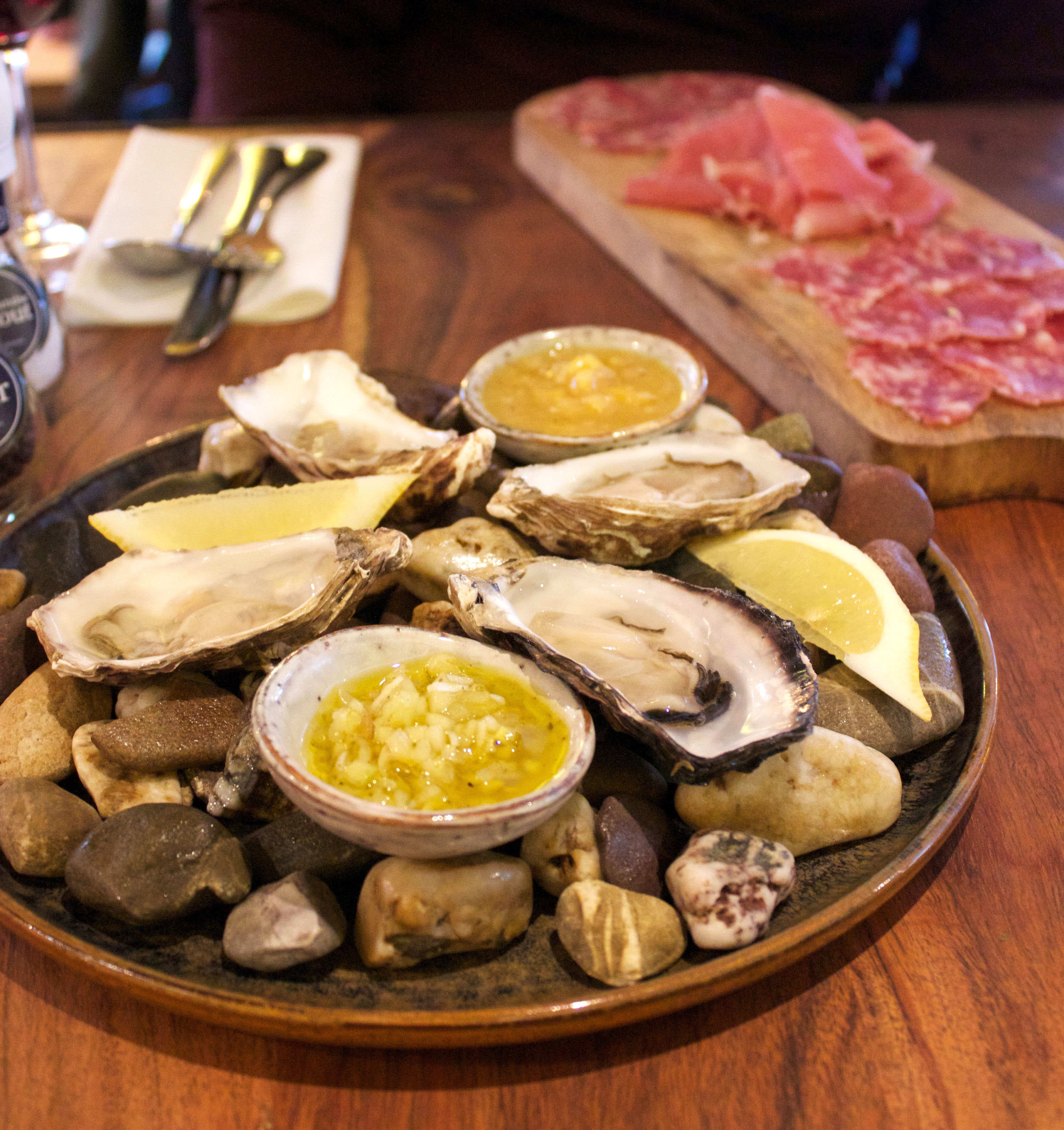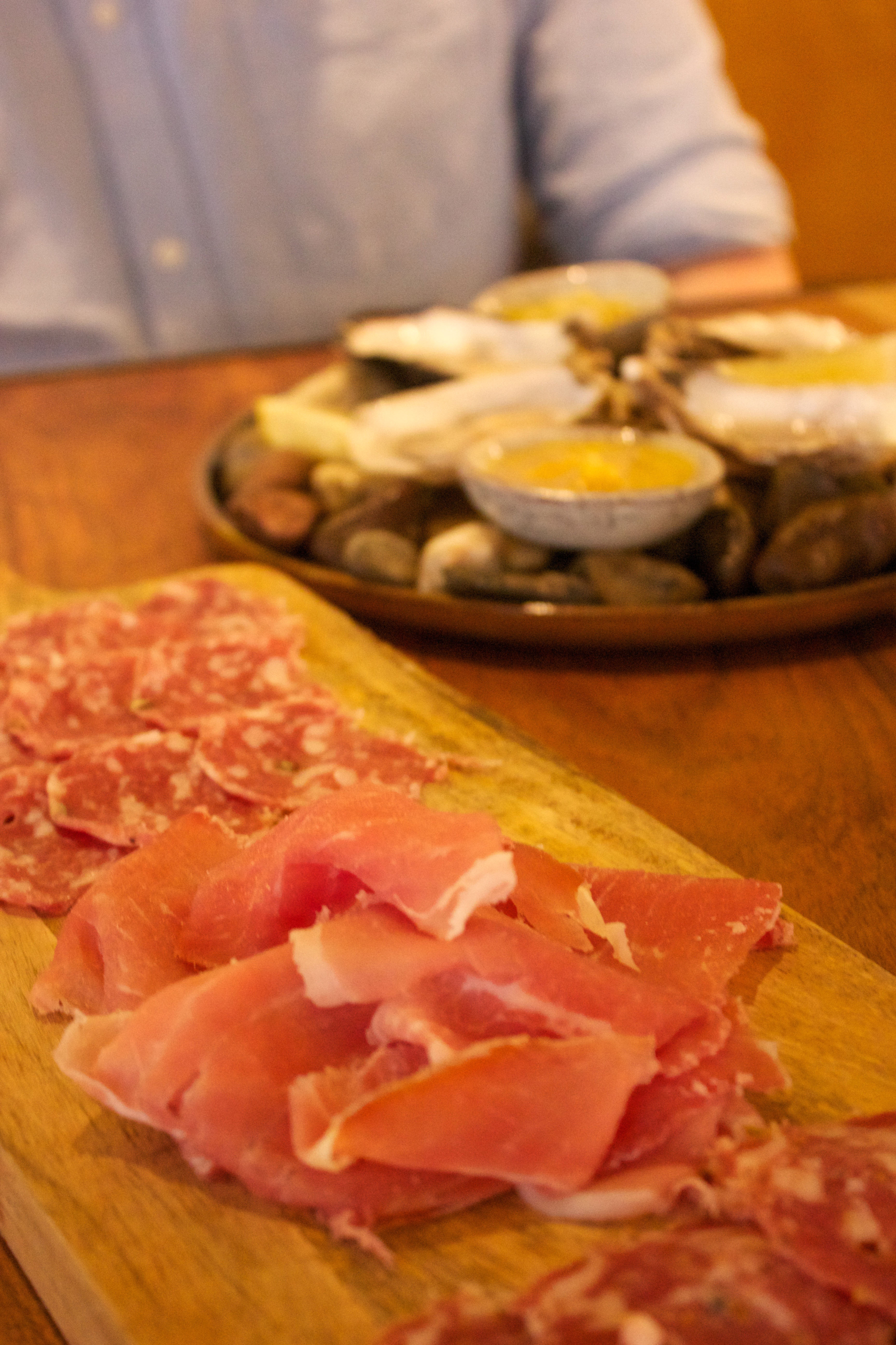 Zelf kiezen we de oesters en de antipasti vleeswaren, met onder andere een overheerlijke venkel salami. Die oesters zijn niet heel erg Italiaans natuurlijk, maar ze worden ons aangeraden en zodra we de eerste naar binnen hebben geslurpt, snappen we waarom: het zijn de lekkerste oesters ooit.