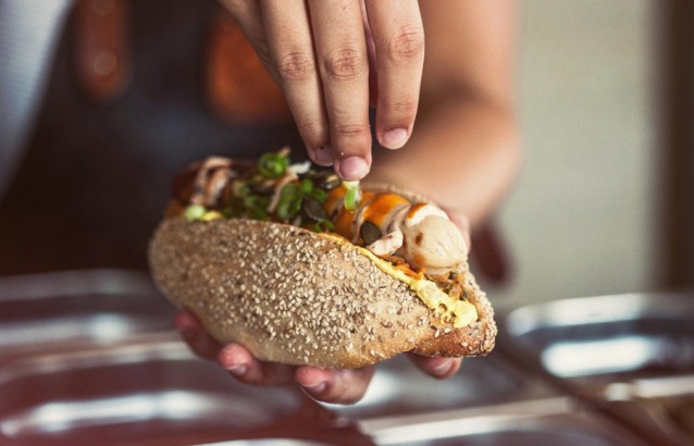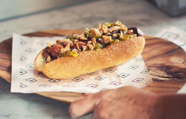 Op het menu staan verschillende ‘hete honden’, allen op verschillende broodjes (van ciabatta tot corn bread) en met de meest appetijtelijke toppings.