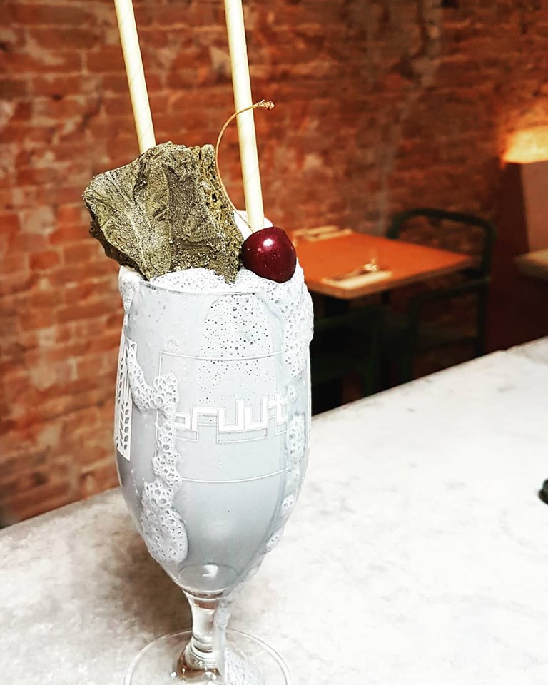 Vjèze Fur (binnenkort meer over hem op Culy…!) tipte ons hier ook de milkshake met gerookte vanille, houtskool, kers en agave. Dat klinkt zó goed, dat je bijna vergeet dat ‘ie ook nog eens plantaardig is.