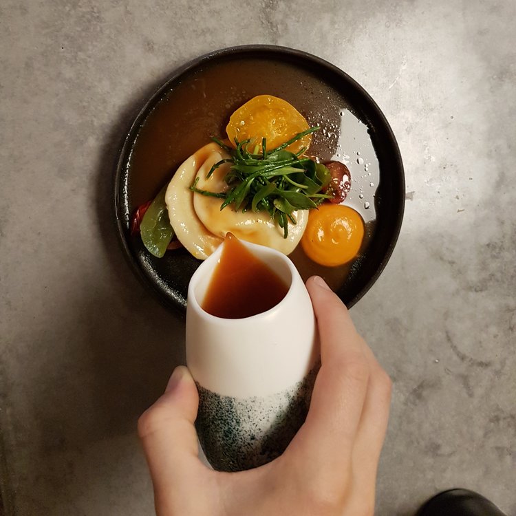 Het menu is altijd een verrassing. Maar het zou kunnen dat je hier een custard van doperwt en avocado aantreft, met zoete bedstro, bessen, pistache en venkelpollen. Of knolselderij, gebakken in zoutkorst, met een bitterbal van spliterwten en vadouvan, gefermenteerde koolrabi, romanesco en koriander. Of kimchi met zwarte rijst, XO saus van paddenstoelen, nashipeer en krokante uitjes.