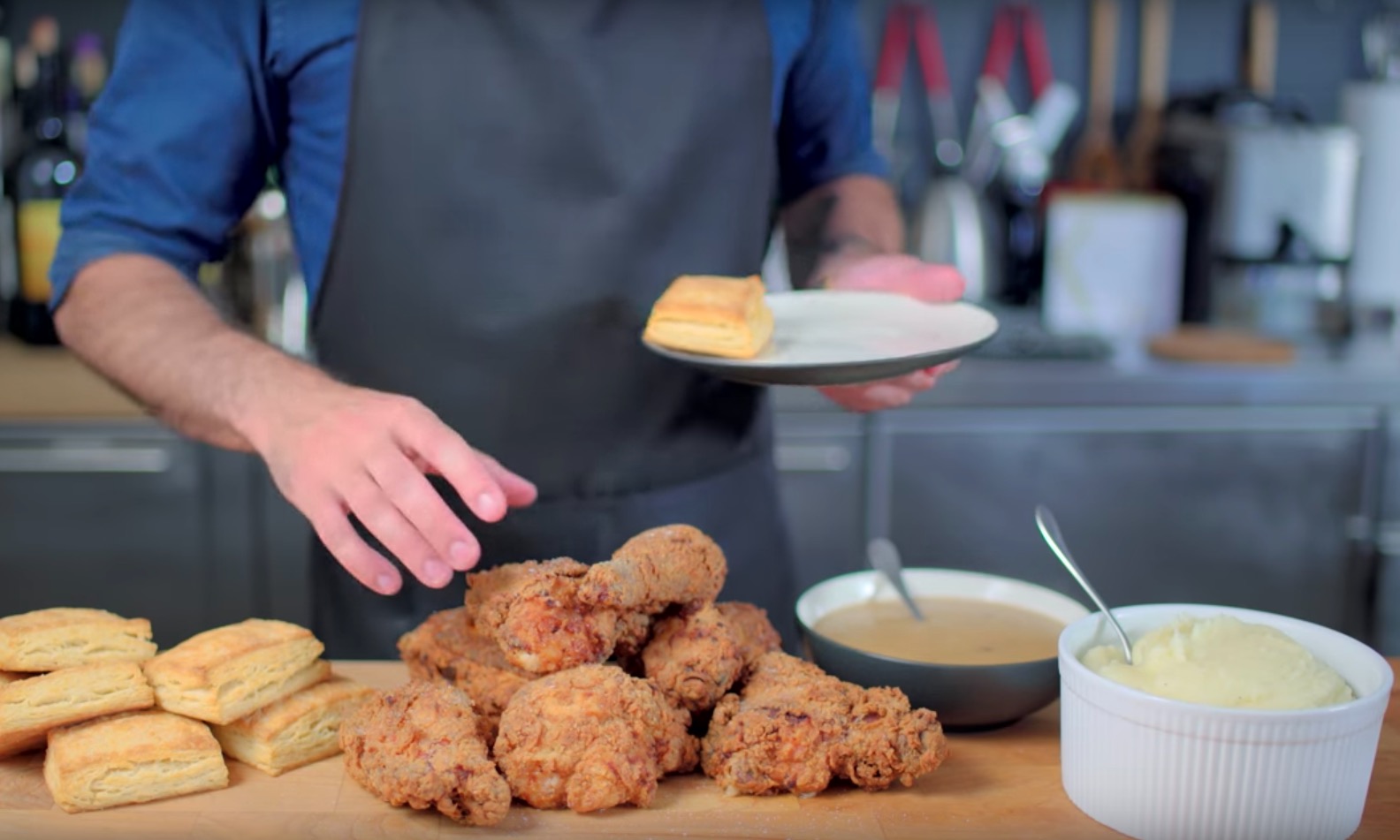 Zelfs de superluchtige biscuits maakt hij from scratch. Dus als biscuits with gravy toevallig ook al op jouw lijstje stond om ooit te maken, grijp dan je kans en gebruik deze video als leidraad. Kost wat tijd, maar dan heb je wél een KFC-maaltijd uit Stranger Things die ook daadwerkelijk lekker is.