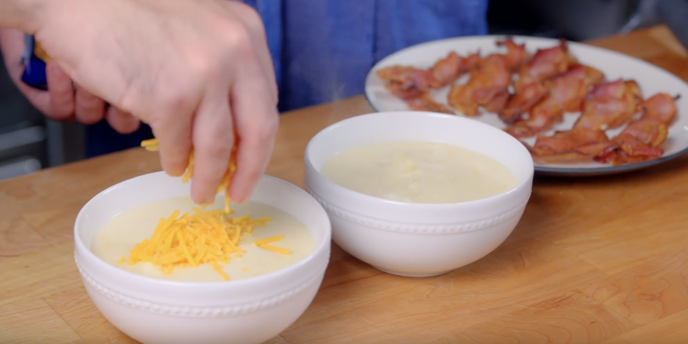 We love cheese! Bij een gerecht waar al kaas doorheen zit (of waar het goed bij past), kun je het nog aantrekkelijker maken door een kaaslaagje te creëren. Dit werkt perfect bij soep of puree. Strooi de kaas eroverheen en laat het een beetje smelten.