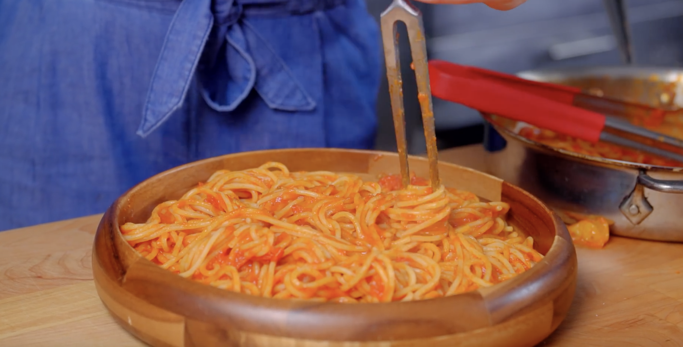 Heerlijk, spaghetti. Maar het kan er als zo’n rotzooitje uitzien op je bord. Door je pasta beetje bij beetje op te scheppen en daarna te draaien in kleine rondjes (tip: gebruik een vleesvork), krijg je een mooie consistente massa.