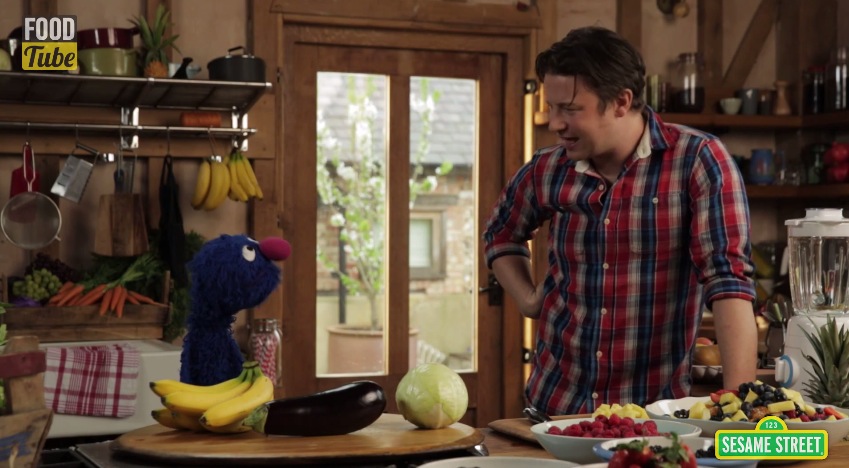 Jamie Oliver geeft groente-les aan… Grover uit Sesamstraat!
