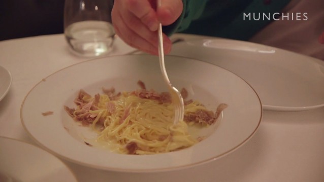 Daarna verder naar het Italiaanse restaurant Babbo, waar chef Frank Langello aan de slag gaat met witte truffels. Hij bereid beef agnolotti met boter en Parmezaan. En… truffel, dat spreekt.