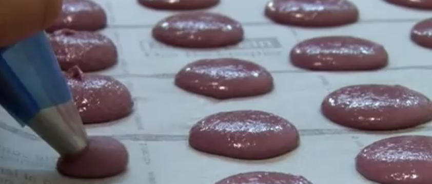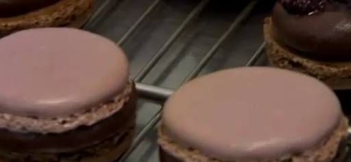 Patissier Mickaël Marsollier opent de deuren van de keuken van macarongod Pierre Hermé. Vandaag op het menu: macarons met een subtiele smaak van Chuao chocolade (uit Venezuela) en zwarte bessen.