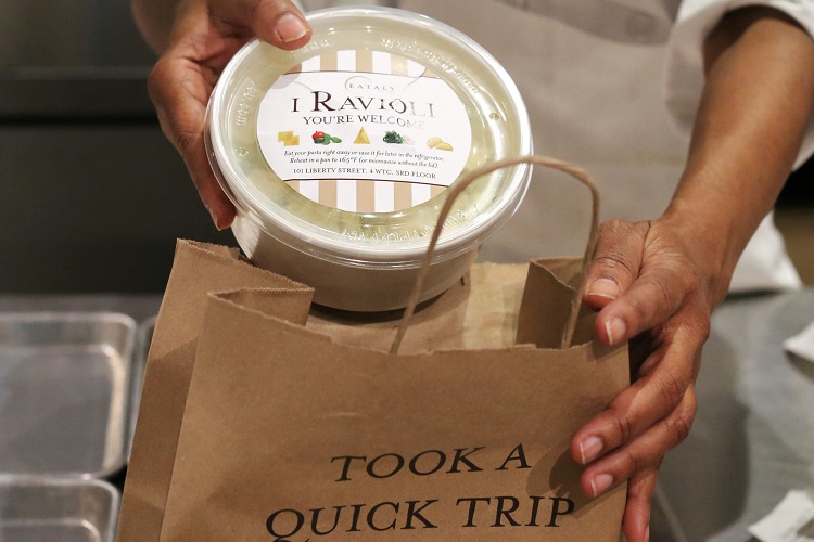 Het kraampje zit in New York, in een vestiging van Eataly: een beroemde overdekte foodmarkt met supermarkten, delicatessenwinkels en restaurants, allemaal met Italiaanse producten.