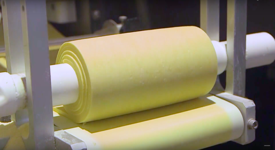 Ook de verse ravioli is in no time klaar. Met een Italiaanse machine worden grote hoeveelheden vers pastadeeg tegelijk gemaakt. Dat gaat op een lange rol die in een andere machine wordt geplaatst.