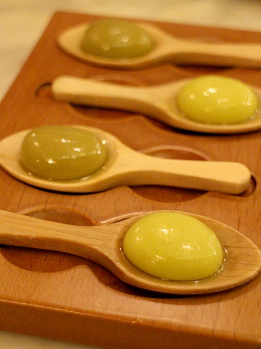 Als we één gerecht moeten aanwijzen wat Bodega 1900 in één hap definieert, dan zijn het Ferran’s ‘olijven’ wel. Deze delicate hapjes worden geserveerd op houten lepeltjes en hebben meer weg van een groene eidooier dan een olijf. Eenmaal in je mond begint het spektakel: de structuur is zacht en de ‘olijven’ ploffen als het ware uit elkaar. De smaak is niet te beschrijven lekker en een mix van olijf met ansjovis of paprika (afhankelijk van welke variant je neemt).