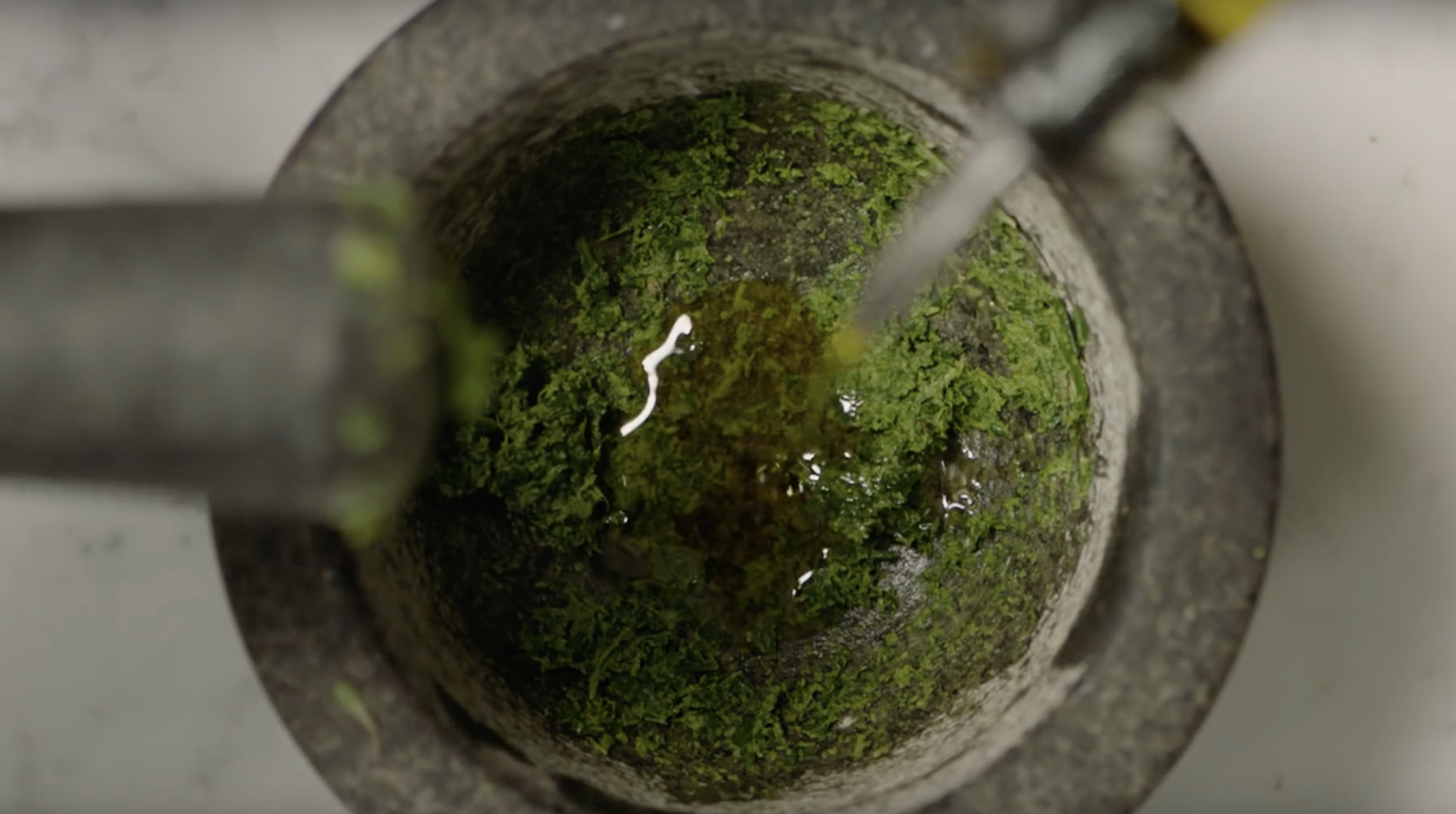 Met een vijzel pureer, mix of snijd je de ingrediรซnten niet, maar je kneust ze. En dit is nou juist dรฉ manier om smaak te creรซeren volgens Jamie. Hij laat ons een aantal simpele receptjes zien waarbij hij een vijzel gebruikt en wij zijn onder de indruk.